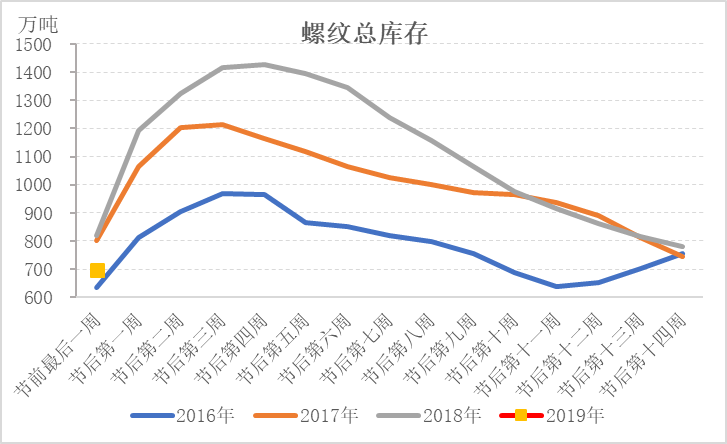 庫存低于去年同期,市場有望出現(xiàn)開門紅行情。根據(jù)Mysteel庫存統(tǒng)計數(shù)據(jù),2019年春節(jié)前最后一周五大品種庫存雖高于2016年,但低于2017、2018年,尤其是螺紋鋼,總庫存低于2018年同期122萬噸。在產(chǎn)量高于去年同期的情況下,需求是好于去年同期的。市場對節(jié)后需求依舊抱有較大期待。