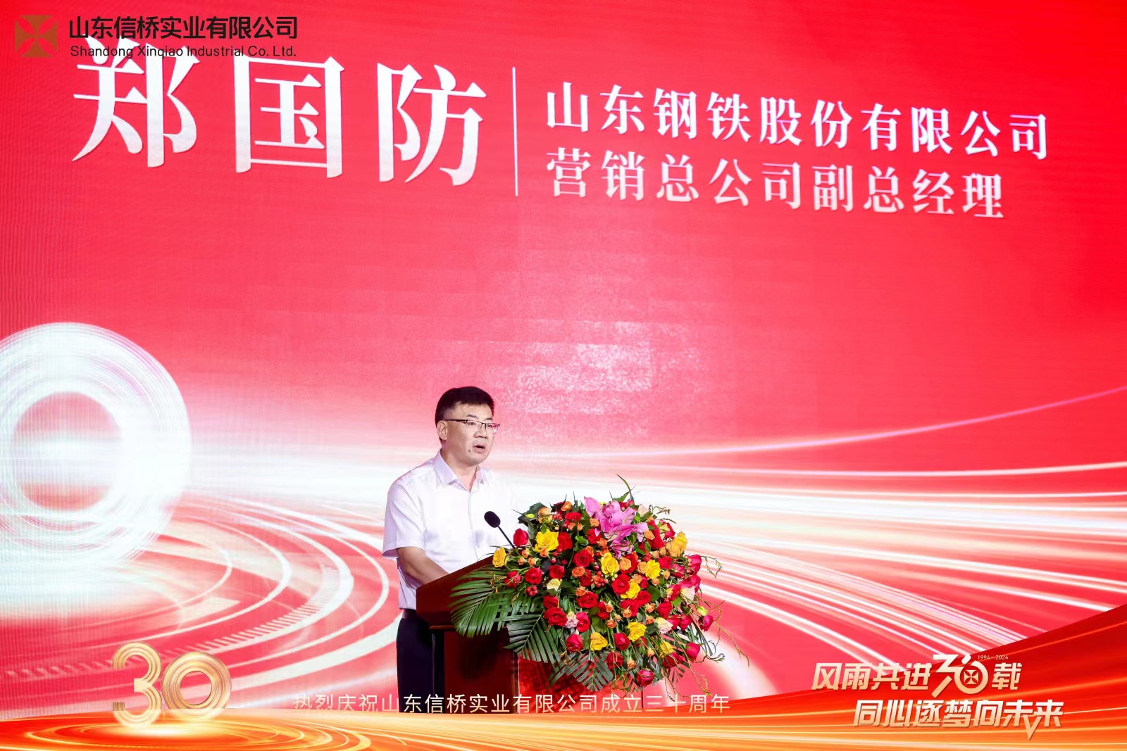 鄭總首先對信橋30周年慶典表示祝賀,并強(qiáng)調(diào)信橋公司在耐低溫和低合金型鋼以及角鋼等領(lǐng)域表現(xiàn)突出,為國內(nèi)外重點(diǎn)工程、重要客戶提供了滿意的產(chǎn)品和服務(wù),為塑造山鋼品牌做出巨大貢獻(xiàn)。最后對雙方合作做出美好展望。